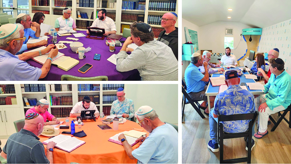 Rabbi Chai Yisroel Nemni conducts an afternoon Talmud class designed to help members of Chabad of Palm Beach Gardens dive deeper into Talmud and build a more meaningful connection with Hashem. The course started with just a few participants and has quickly gained momentum. By diving deep into the discourses of the various Torah scholars, asking questions, unpacking the notes, and enhancing understanding, students experience lightbulb moments of understanding as they dig into the texts. Going for quality over quantity makes this class interesting and interactive. Participants actively engage with each other, sharing questions and curious inquiries. This interactive style of teaching helps to enhance learning and applying the material to the world we live in.