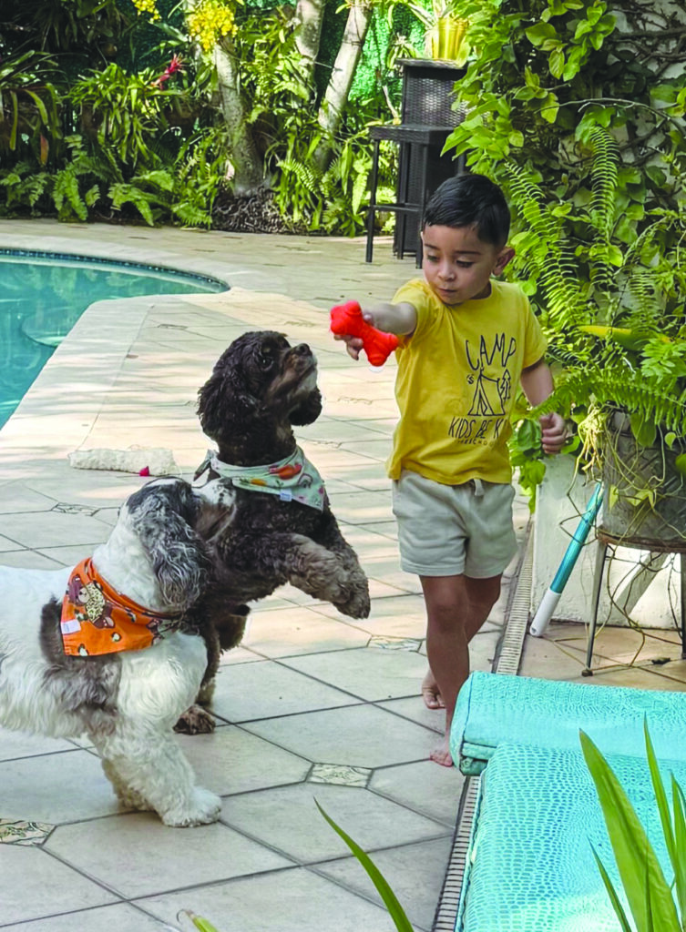 In July, Auggie joined their family and is now living his best life—playing soccer in the yard, enjoying the company of his new Cocker companion, Freckles, and soaking up attention from the grandchildren.